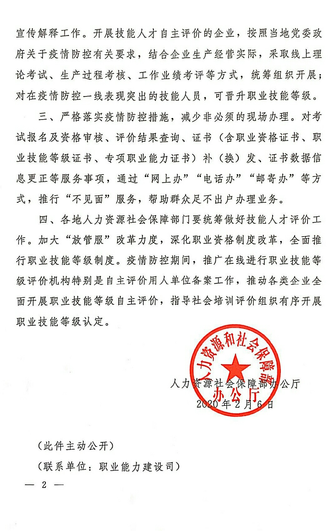 关于切实做好新型冠状病毒感染肺炎疫情防控期间技能人才评价有关工作的通知