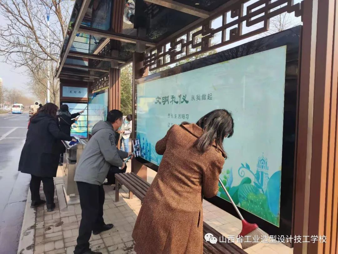 三月二十三号下午,我校组织教职工开展了学雷锋志愿服务月之“清洗公交站台,共创文明城市”活动。